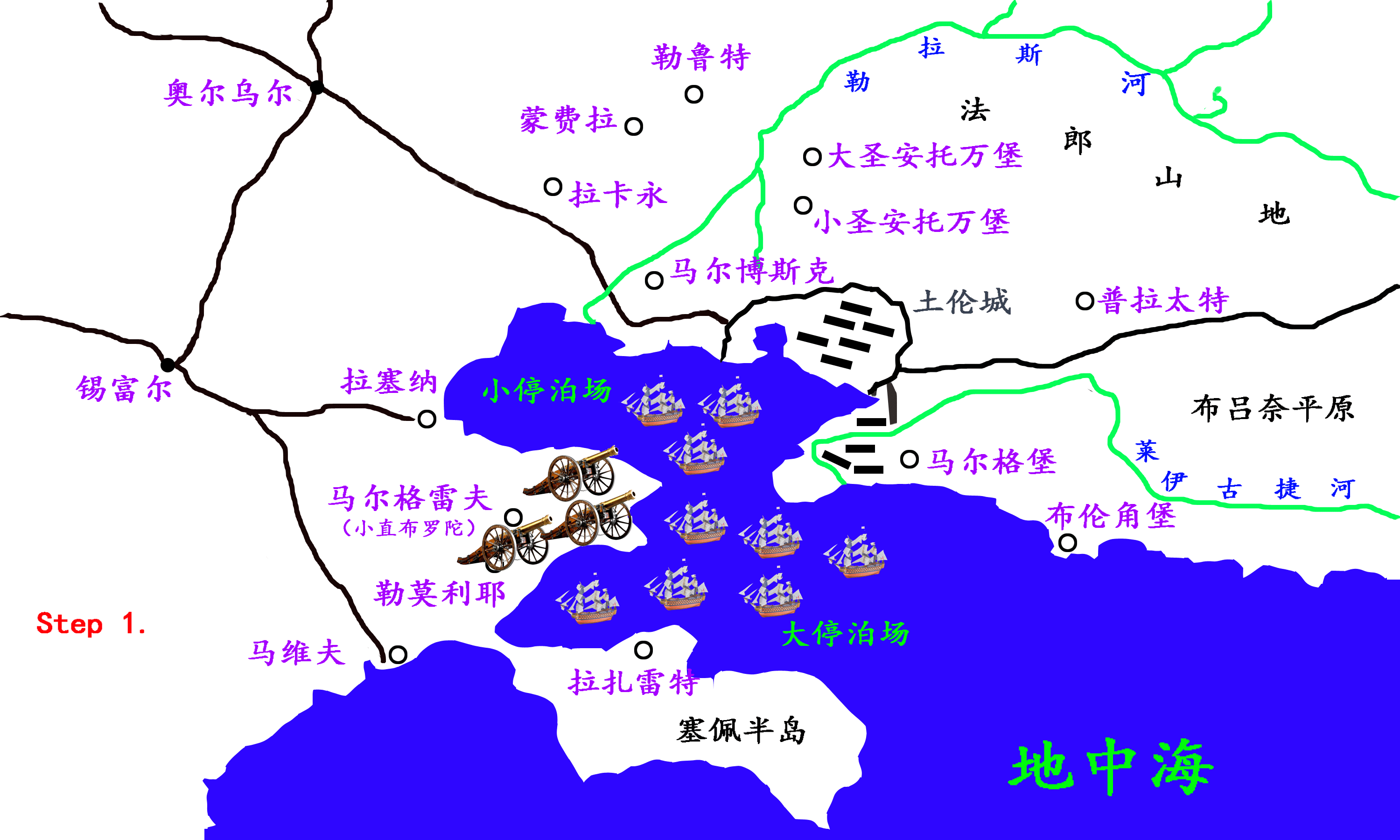| 土倫是位于法國(guó)南部地中海沿岸的軍港要塞,拿破侖皇帝嶄露頭角的土倫戰(zhàn)役就是在這里打響,時(shí)至今日這個(gè)地方仍然是法國(guó)最大的軍港以及戴高樂(lè)號(hào)核動(dòng)力航母的母港。那么促使拿破侖走入大家視線的土倫戰(zhàn)役有什么樣的時(shí)代背景?這場(chǎng)戰(zhàn)役的經(jīng)過(guò)是怎么樣的?而年輕的拿破侖少校在作戰(zhàn)過(guò)程中的謀劃和指揮又有哪些過(guò)人之處呢?   1793年2月,第一次反法同盟成立,英國(guó)、普魯士、奧地利、荷蘭、西班牙、撒丁王國(guó)和那不勒斯等君主制國(guó)家紛紛派出軍隊(duì)入侵法國(guó),新生的法蘭西革命政府面臨巨大考驗(yàn)。同年8月,保王黨人作為內(nèi)應(yīng),勾結(jié)英國(guó)和西班牙海軍奪取土倫,而土倫的失陷意味著法國(guó)面向地中海的門(mén)戶洞開(kāi),此后那不勒斯、皮埃蒙特和直布羅陀的海軍相繼進(jìn)入該港,土倫的外國(guó)軍隊(duì)達(dá)到14000人。 從土倫軍港的地形來(lái)看,所有的陸上要塞基本圍繞大小停泊場(chǎng)修建,小停泊場(chǎng)的東北方向?yàn)橥羵惓菂^(qū),再往東北則是法郎山地,這里要塞林立、易守難攻。大小停泊場(chǎng)以西則是馬爾格雷夫,又稱“小直布羅陀”,從這里架設(shè)火炮可以直接威脅停泊在大小停泊場(chǎng)的軍艦,因此是反法同盟防守的重點(diǎn)。此外,土倫城西側(cè)的馬爾博斯克要塞、東南方向的馬爾格堡、布倫角堡,以及環(huán)繞大停泊場(chǎng)的塞佩半島均在盟軍之手。更要命的是,保王黨引狼入室的時(shí)候把停在港內(nèi)的30艘法國(guó)軍艦拱手送給了英國(guó)人,加上盟軍本身已有的軍艦,敵方的艦船總數(shù)超過(guò)了70艘。這就意味著拿破侖等人在陸上進(jìn)攻的時(shí)候,海上的艦炮可以直接對(duì)法軍轟擊。   盟軍防守力量 土倫事件震驚了法國(guó),巴黎當(dāng)局立即派遣阿爾卑斯軍團(tuán)沿奧爾烏爾至馬爾博斯克方向向土倫推進(jìn),同時(shí)命令意大利軍團(tuán)從東面布呂奈平原進(jìn)攻土倫,然而因?yàn)榉ɡ缮降氐淖韪?,它們之間沒(méi)有任何戰(zhàn)術(shù)上的聯(lián)系和策應(yīng),局面逐漸陷入僵持。此時(shí)西路軍團(tuán)的炮兵指揮官陣亡,路過(guò)的拿破侖被舉薦為繼任者,一個(gè)不經(jīng)意間的歷史小插曲,成就了拿破侖日后偉業(yè)的開(kāi)端。接手后的拿破侖立即著手重組炮兵,并在很短的時(shí)間內(nèi)搜集到種類齊全的榴炮、野炮和臼炮。 作為一名專業(yè)的炮兵軍官,拿破侖一眼就看出小直布羅陀的價(jià)值,可惜軍團(tuán)司令卡爾托是個(gè)庸才,以致對(duì)雙方都關(guān)系重大的馬爾格雷夫要塞落入敵方之手。歷史無(wú)數(shù)次證明,具有重大戰(zhàn)略戰(zhàn)術(shù)意義的地方是被雙方同時(shí)偏愛(ài)的,誰(shuí)先下手,它就為誰(shuí)服務(wù)。在隨后的作戰(zhàn)會(huì)議上,前線指揮部討論了來(lái)自巴黎的指示:繼續(xù)原定計(jì)劃,不論正面火力如何兇猛,集中60000人從東西兩側(cè)強(qiáng)攻法郎山,而后合擊土倫城。這個(gè)計(jì)劃得到在場(chǎng)多數(shù)高級(jí)指揮官的認(rèn)同。   巴黎方面作戰(zhàn)計(jì)劃 拿破侖靜靜地等眾人說(shuō)完,然后提出了一個(gè)截然相反的計(jì)劃,他指出:正面強(qiáng)攻利敵不利我,一旦久攻不克,士氣必然瓦解,而即使僥幸攻下,盟軍也有足夠時(shí)間燒毀船塢、毀壞輜重,甚至洗劫土倫城區(qū),這樣的勝利代價(jià)太大。因此最簡(jiǎn)單的做法是集中兵力攻克小直布羅陀,然后布置足夠的30磅和24磅火炮向大小停泊場(chǎng)轟擊,這樣盟軍艦隊(duì)要么撤走,要么被殲,沒(méi)有第三條路可走。而一旦失去反法同盟的支持,土倫城區(qū)的保王黨只能束手就擒。   拿破侖作戰(zhàn)計(jì)劃 眾人聽(tīng)罷,不敢相信這個(gè)大膽的戰(zhàn)術(shù)規(guī)劃居然出自這樣一個(gè)年輕人,但確實(shí)有道理,很快新的計(jì)劃按照拿破侖的意圖擬定并報(bào)送巴黎審批。11月下旬,戰(zhàn)斗打響,法軍集中45門(mén)大口徑火炮猛轟馬爾格雷夫,在連續(xù)炮擊48小時(shí)之后又以4個(gè)縱隊(duì)的兵力奮戰(zhàn)一天一夜才完全控制小直布羅陀,可見(jiàn)盟軍防守之頑強(qiáng)。而小直布羅陀在失陷的那一刻也宣布了盟軍的失敗,拿破侖調(diào)來(lái)全部重型火炮打算將大小停泊場(chǎng)內(nèi)的敵艦如數(shù)擊沉。但盟軍顯然不會(huì)坐以待斃,就在法軍架設(shè)炮臺(tái)的同時(shí),英國(guó)海軍上將胡德勛爵命令立即拔錨張帆,盟軍倉(cāng)皇撤退。留在土倫城內(nèi)的保王黨見(jiàn)大勢(shì)已去,除了痛哭咒罵之外,只能舉旗投降。   土倫戰(zhàn)役過(guò)程 拿破侖一戰(zhàn)功成,但這只是其一生戎馬的開(kāi)端,在未來(lái)的歲月里,皇帝陛下的軍隊(duì)還將翻越比利牛斯山,進(jìn)入西班牙和葡萄牙;征戰(zhàn)意大利,突入羅馬;進(jìn)攻普魯士和奧地利,打垮神圣羅馬帝國(guó);甚至遠(yuǎn)征波蘭和俄羅斯。而所有這些豐功偉業(yè)都源自那個(gè)原本默默無(wú)聞的24歲科西嘉少年在土倫的初試鋒芒。   |