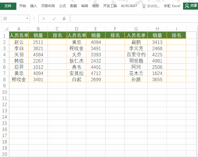 扁舟重過九青蓮,極目空明思浩然??墒钱嫻┛坍?,只因山骨偶枝駢。風(fēng)高迥認(rèn)龍騰海,云散初疑劍插天。剩采太湖嵌孔石,南窗排列佇飛仙。 -------[宋] 孔武仲《九華山》 排序的函數(shù),如果大家對Excel基礎(chǔ)函數(shù)比較了解的話,應(yīng)該都知道RANK函數(shù)。 我們在實際工作中,常常把RANK函數(shù)用于對一列數(shù)據(jù)的基本排序,即從大到小的排序方法,那你還知道它的其他什么用法嗎? 今天就給大家系統(tǒng)的分享下RANK函數(shù)的用法,分享的內(nèi)容主要為以下這6種技巧。 1、升序排列 2、降序排列 3、多列數(shù)據(jù)排名 4、多條件排名 5、不出現(xiàn)相同排名(以出現(xiàn)順序進(jìn)行優(yōu)先排列) 6、跨多表排名 首先我們先了解下RANK函數(shù)的基本定義。 RANK(number,ref,order) number:要查找排名的數(shù)值 ref:參與排名的單元格區(qū)域,非數(shù)字值將被忽略。 order:代表排位方式,0或不填的時候為降序排列,即最大值為第一名;非零時為升序排列,即最小值為第一名 知道了RANK函數(shù)的基本定義,下面我們來看下它的具體使用技巧。 技巧一、升序排列 比如我們把下面的數(shù)據(jù),按銷量由小到大進(jìn)行升序排列,要如何做呢? 只需要在E2單元格輸入如下公式,即可。 =RANK(D2,$D$2:$D$24,1) 按RANK函數(shù)的參數(shù)定義,當(dāng)order,非0時即為升序排列。 技巧二、降序排列 同樣是使用如上的數(shù)據(jù),按銷量對數(shù)據(jù)從大到小進(jìn)行排序,最大值即為1。 E2單元格公式: =RANK(D2,$D$2:$D$24) 技巧三、多列數(shù)據(jù)排名 比如如下樣式,我們有多列數(shù)據(jù),我們想將多列不同的數(shù)據(jù),同樣按銷量大小進(jìn)行排名,要如何進(jìn)行操作呢? 操作步驟: 1、選中A1:I8數(shù)據(jù)區(qū)域,按Ctrl+G定位 2、定位條件,選中【空值】,點擊確定 3、輸入如下公式,然后按Ctrl+Enter填充,即可 =RANK(B2,($B$2:$B$8,$E$2:$E$8,$H$2:$H$8)) Ps:特別需要注意的是,我們的參數(shù)2Number是3個區(qū)域的合并,中間是使用英文逗號','連接。 技巧四、多列條件排名 我們有如下的數(shù)據(jù),可以看到部分同學(xué)的物理化學(xué)的總分是一樣的,比如'趙云','李白','妲己'都是179分,如果總分一樣,我們再依物理成績的大小進(jìn)行排序,這要如何去做呢? 操作步驟: 1、首先我們在E列增加一個輔助列,輸入如下公式: =D2*1000+B2 公式理解: 當(dāng)我們把總分進(jìn)行放大1000倍的時候,總分之間的大小是不變的,再加上物理的成績,即實現(xiàn)了大小區(qū)分 2、在F列輸入公式: =RANK(E2,$E$2:$E$10) 3、最后再隱藏輔助列即實現(xiàn)了多條件排序 技巧五、不出現(xiàn)相同排名(以出現(xiàn)順序進(jìn)行優(yōu)先排列) 首先我們要理解此技巧是什么意思呢? 我們在實際排序的時候,偶爾會遇到數(shù)據(jù)是相同的,我們在進(jìn)行排名的時候,這些排名往往是相同的,就比如如下案例: '黃忠''程咬金'的銷量相同,排名都為第2,那如果我不想讓它出現(xiàn)相同的排名,而是以'黃忠'先參與排名,排名為2,'程咬金'后參與排名,排名為3,其他類似,這樣的排名要怎么做? 很簡單,主要我們在參與排名的時候,增加個計數(shù)統(tǒng)計即可。 在D2輸入公式: =RANK(B2,$B$2:$B$11)+COUNTIF($B$2:B2,B2)-1 可以發(fā)現(xiàn),排名是按出現(xiàn)的順序依次進(jìn)行的。 這個函數(shù)的關(guān)鍵在于COUNTIF函數(shù)的應(yīng)用,COUNTIF($B$2:B2,B2)-1公式中第一個B2是絕對引用的,當(dāng)公式向下拖動時,即可以得到相應(yīng)的數(shù)據(jù)是第幾次出現(xiàn)的,然后再加上原始排名即可。 技巧六、跨多表排名 我們有下面的4張工作表,每個工作表都有一部分?jǐn)?shù)據(jù),其中D列均為銷量,我們?nèi)绾胃鶕?jù)所有的表進(jìn)行銷量排名呢? 我們點擊E2單元格,輸入如下RANK函數(shù): =RANK(D2,銷售1部:銷售4部!$D$2:$D$7) number選擇D2,輸入ref內(nèi)容時,點擊'銷售1部',按住Shift鍵,再點擊'銷售4部',選擇D2:D7單元格,按F4把區(qū)域絕對引用。 其他各個工作表同樣輸入此公式即可。 Ps:特別需要注意的是,引用的區(qū)域必須是所有工作表里行數(shù)范圍最大的,否則統(tǒng)計數(shù)據(jù)不是所有的內(nèi)容 其他內(nèi)容 最后再給大家分享下RANK函數(shù)家族的其他函數(shù),RANK.EQ和RANK.AVG 各個函數(shù)支持的Excel版本及參數(shù)含義如下: 具體的操作可看下面的圖: RANK.EQ和RANK的用法一致,RANK.AVG返回數(shù)據(jù)的平均排位,比如上面的數(shù)據(jù)'趙云''李白'的排名使用RANK及RANK.EQ函數(shù)均為3,而RANK.AVG函數(shù)為3.5,及排名為第3、4名的平均值,更多需要需要大家再發(fā)掘下。 如果覺得文章對你有幫助的話,希望大家?guī)兔c贊加分享哦~,謝謝 本文由彩虹Excel原創(chuàng),歡迎關(guān)注,帶你一起長知識! |