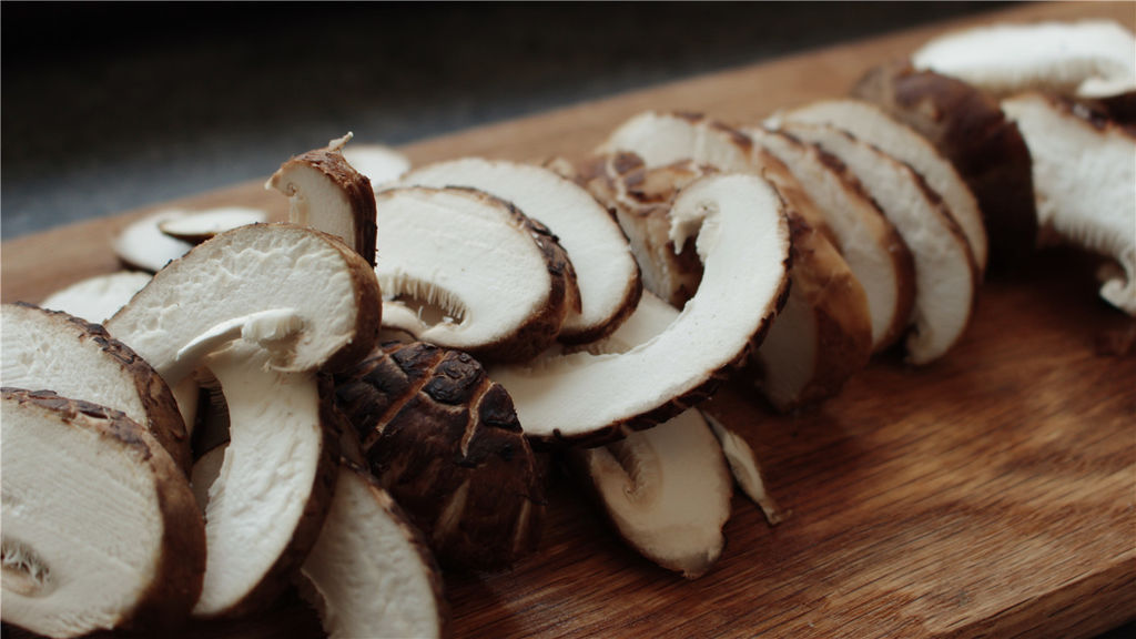 4、香菇準(zhǔn)備好了以后也用水清洗干凈,然后切成薄片,或者大家想要吃香菇粒的,也可以切成碎粒。