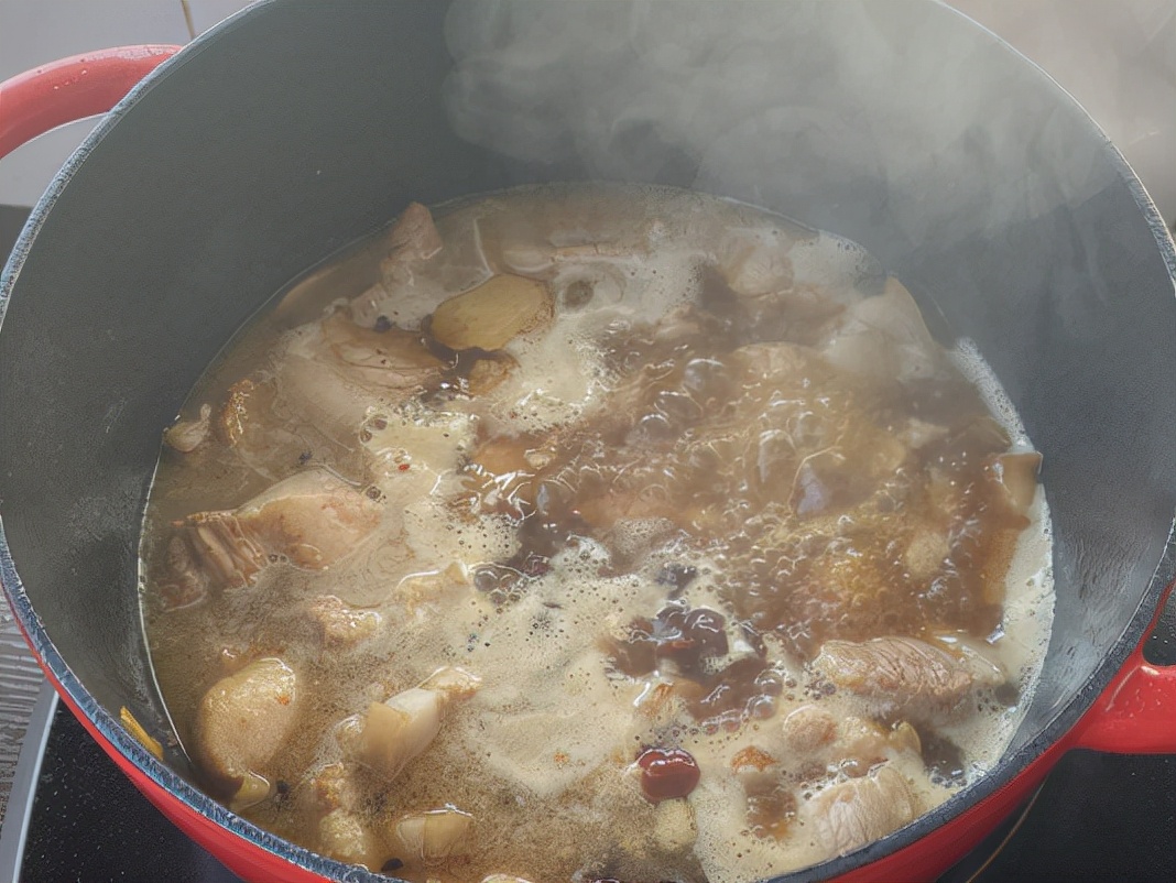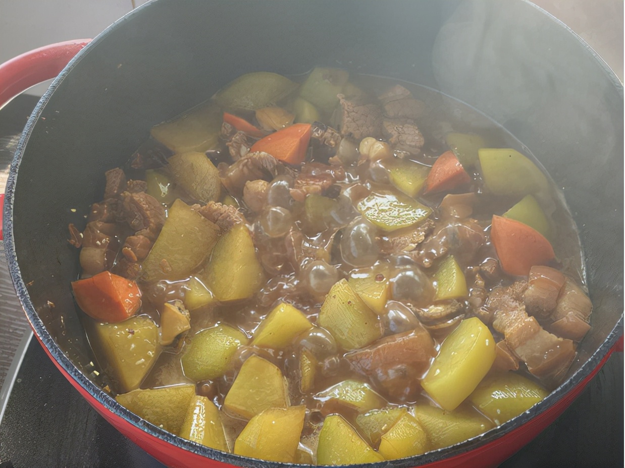 4、等到時(shí)間到了以后,鍋里的湯汁也是慢慢煮稠了。