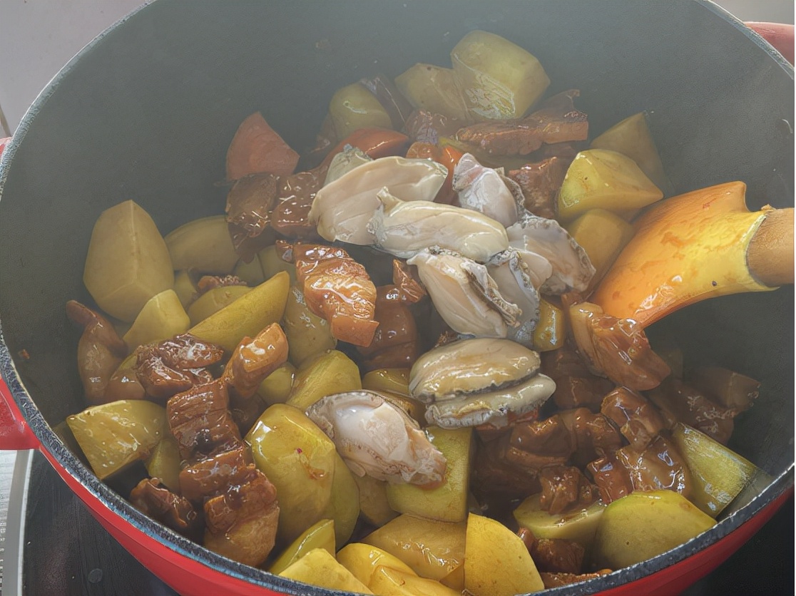 因?yàn)楦鞯仫嬍澄幕牟町?,紅燒肉也有很多不同的做法,比如搭配其他的食材。今天挑選的是小鮑魚和土豆,營(yíng)養(yǎng)馬上就翻倍了,口感上也變得更加有層次。土豆又能很好地吸油,這樣就降低了油膩感,同時(shí)土豆吃起來軟糯入味,油滋滋的別提有多好吃了。