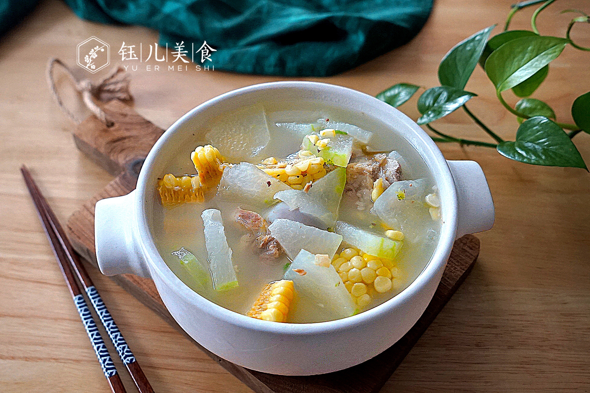 做法:1、冬瓜去皮切成小塊,玉米切成小段。2、排骨洗干凈,放入冷水鍋中大火煮開,撈出浮沫,直到清澈為止。然后放入姜片、蔥,改中小火煲至排骨可以插入筷子、湯色濃白為止。3、再倒入玉米、冬瓜、鹽、雞精,中火燉7分鐘左右,即可關(guān)火飲用。