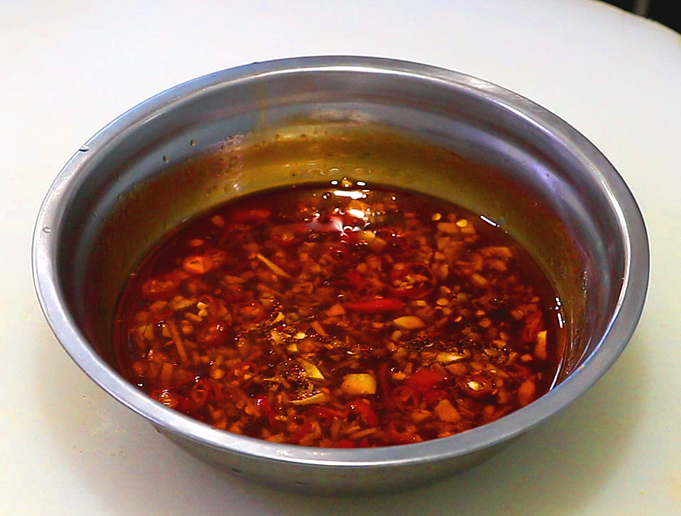 3、另起鍋,倒入少許食用油,油溫?zé)?strong style="touch-action: pan-y; margin: 0px; padding: 0px; outline: 0px; -webkit-tap-highlight-color: transparent; max-width: 100%; overflow-wrap: break-word !important; box-sizing: border-box !important; font-size: 17px !important;">5成熱時,放幾?;ń泛图t干椒,炸出香味后關(guān)火起鍋,然后把熱油澆在蒜末和辣椒上面,激發(fā)出蒜末和辣椒的香味。