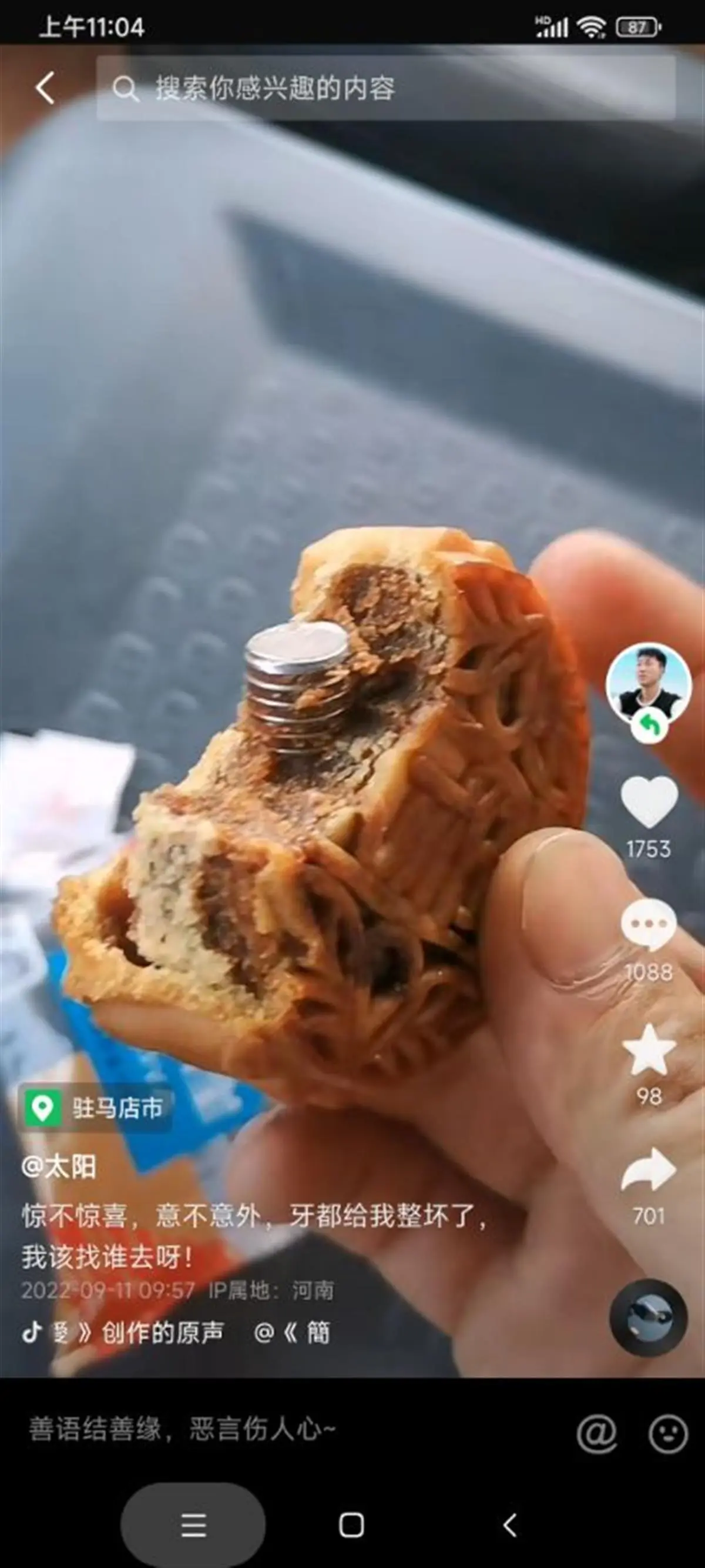 極目新聞?dòng)浾?張萬軍 河南駐馬店一男子反映,中秋節(jié)期間吃月餅時(shí)咬到一顆螺絲,導(dǎo)致兩顆牙齒受損,其發(fā)布的相關(guān)視頻引發(fā)網(wǎng)友關(guān)注。涉事月餅生產(chǎn)企業(yè)表示,已注意到此事,正在調(diào)查核實(shí)。 ![]() 一段網(wǎng)絡(luò)視頻顯示,一塊被咬了小半的月餅中,露出一截長約1厘米長的螺絲,螺絲的其他部分被包裹在月餅中,螺絲的尾部也露了出來;月餅的包裝袋顯示這是一塊“精品棗蓉月餅”,包裝袋還顯示了月餅的品牌、聯(lián)系方式等信息。 ![]() 視頻發(fā)布者稱,驚不驚喜,意不意外,牙都給整壞了,他該找誰? 上述視頻引發(fā)網(wǎng)友關(guān)注,有網(wǎng)友評(píng)論稱,“見過五仁的,沒想到還有五金的!”“螺絲餡月餅”“全國獨(dú)一份!” 9月13日,視頻發(fā)布者李先生告訴極目新聞?dòng)浾?,他來自河南駐馬店,幾天前親戚送給他一盒某品牌的月餅。9月11日上午,他在吃這盒月餅中的一塊月餅時(shí),突然咬到一個(gè)硬東西,上下兩顆牙齒被崩壞了。他開始以為是咬到了月餅中的冰糖,后來才發(fā)現(xiàn)是一顆螺絲。他多次撥打月餅生產(chǎn)企業(yè)的電話準(zhǔn)備投訴,13日早晨終于聯(lián)系上,企業(yè)的前臺(tái)工作人員說會(huì)上報(bào)。 “上下兩顆牙有些松動(dòng),這幾天一直有些酸疼,都不敢吃硬東西,到醫(yī)院開了一些止疼藥在吃,希望月餅生產(chǎn)企業(yè)能給他一個(gè)說法?!崩钕壬f。 該月餅為鄭州一公司生產(chǎn)。該公司工作人員告訴極目新聞?dòng)浾?,他們已?jīng)關(guān)注到此事,正在核實(shí)相關(guān)情況。 李先生表示,他已向12315投訴此事。鄭州市12315投訴舉報(bào)維權(quán)中心工作人員表示,消費(fèi)者可以將視頻等相關(guān)資料上傳到12315的平臺(tái)上,后續(xù)會(huì)有工作人員跟進(jìn)處理此事。 (來源:極目新聞) |